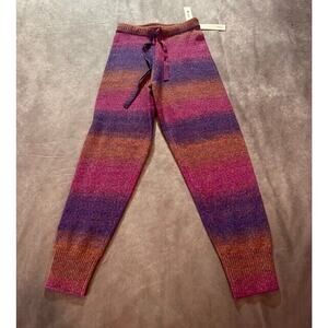 Aqua Womens Space Dye Jogger Pants Striped Ribbed Drawstring Pull On Size XS NWT