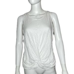 Aqua Women's White Casual Oversized Arm Hole Twist Front Crew Neck Tank sz L