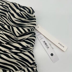 Brand new with tags Aqua zebra print ruched halter dress in size Large. Features a black and white zebra pattern, ruched detailing for a flattering fit, and a halter neckline with adjustable ties. A stylish and trendy dress, perfect for nights out or vacations.