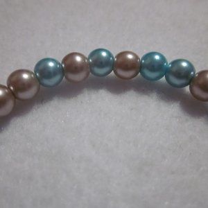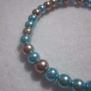 Aqua and Beige Stretch Bracelet.