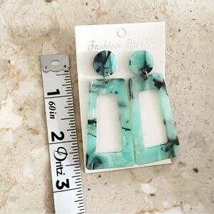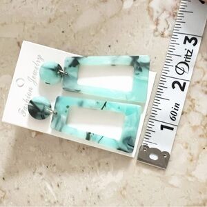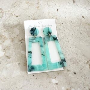 Chic aqua and black rectangular earrings. Ideal for adding a pop of color. BGB