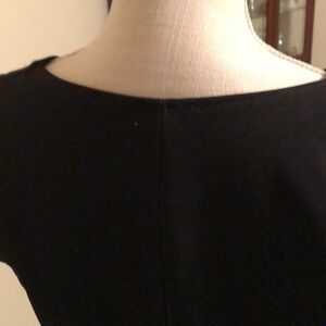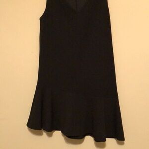 Black dress sleeveless with v neckline. Asymmetrical hem. poly and spandex for comfortable fit. Bottom has wide band of same fabric . NWOT