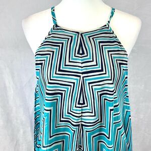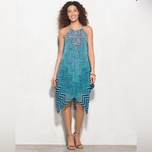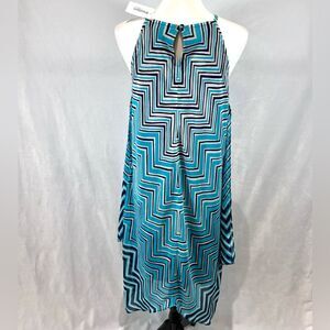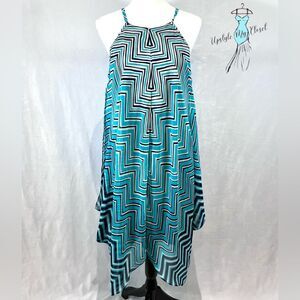 Aqua blue navy and white asymmetrical hem halter midi dress size 10 NWT