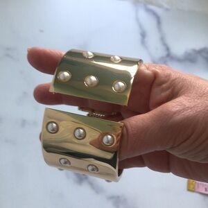 Aqua by Bloomingdales Gold Tone Wide Cuff Bracelet With Pearl Accents NWT