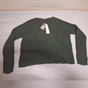 Aqua cashmere distressed sweater in a womens small. Forest green. NWT