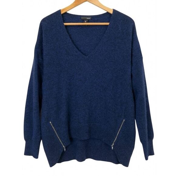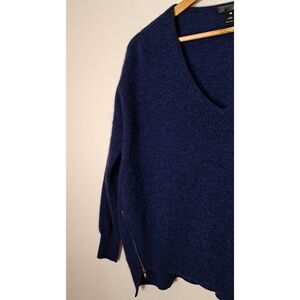 Aqua cashmere womens large Azure cobalt blue cashmere sweater with zipper super soft texture