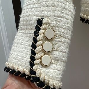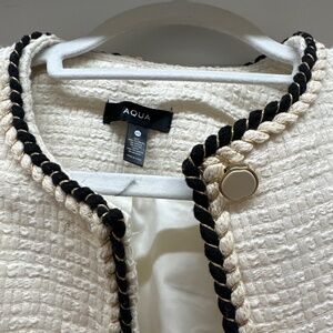 Worn once Aqua Chanel style cream cropped blazer with black and gold trim.