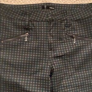 Skinny jeans with dark green and black checkered pattern. Zipper detailing.
