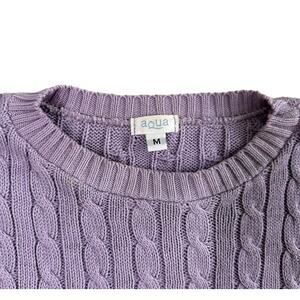 Add a touch of cozy charm to your wardrobe with this lovely Aqua cotton cable knit sweater. The soft lavender hue and classic crew neck design make it a versatile piece for any occasion. This sweater is in women's size medium.