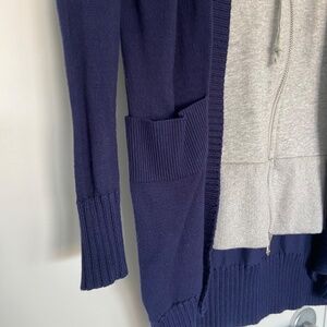 Aqua navy and grey mixed media cardigan with hood