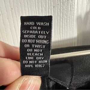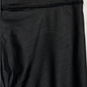 Aqua polyester/spandex leggings, size medium. Shiny black. Full length, low rise.