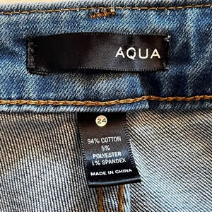 Aqua women’s skinny raw hem Denim jeans with crinkled legs and side stripe 24