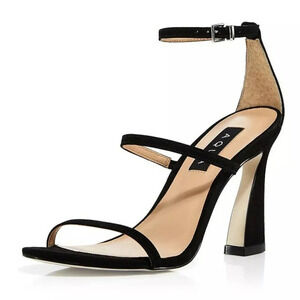 Aqua x Maeve Reilly Women's Jenni Black Nubuck Strap High Heel Sandals Size 9.5 M