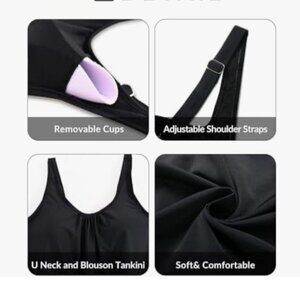 tankini swimsuit, floral swimwear, black shorts set, modest swimwear, two-piece swimsuit, Aqua Eve tankini, women's swimwear, adjustable straps, blouson top, summer beachwear, swim tank top, comfortable swim set, pool outfit