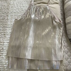 Preowned in excellent condition, lined with two tiered bottom. It has spaghetti straps and a keyhole back button.
