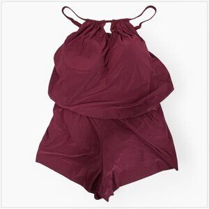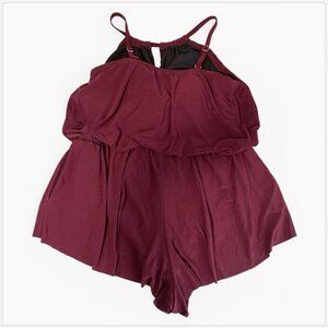 AquaGreen Burgundy Currant High Neck Swim Romper One Piece Swimsuit NWT Plus 20W