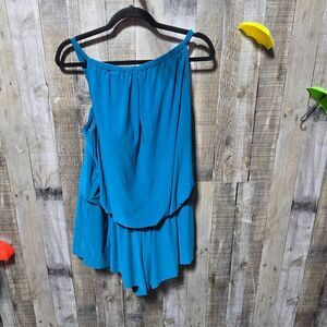 Aqua Green Swimsuit 16 Womens Blue One Piece Swim Romper Pockets UPF 50+ NWT