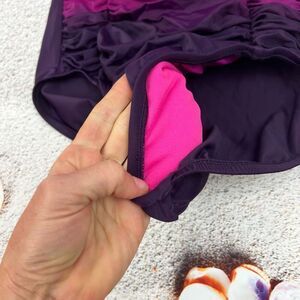 Keywords: Aqua Green, one piece, swimsuit, pink, ombre, beachwear, poolside, sweetheart neck, ruched, UPF 50, women's swimwear, size 6, summer fashion, recycled polyester, pre-owned.