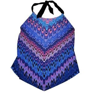 Asymmetrical, Geo, Colorful, Multicolor, Vibrant, Bright, Summer, Blue, Purple, Pink, Black, Tie Back Halter Strap, Swimwear, Swim, Beach, Vacation, Travel, Tropical, Cruise, Watercolor, Stretch, Pool, Built in Bra, Polyester, Spandex, Top
