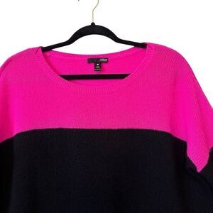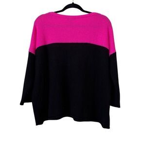 Aqua Magenta & Black Color Block 3/4 Sleeve Cashmere Sweater Sz L Preppy, Soft