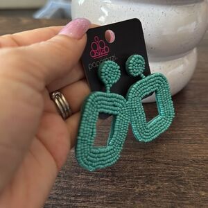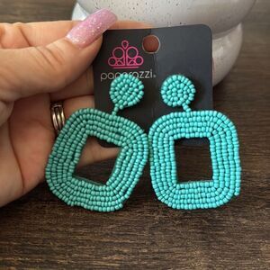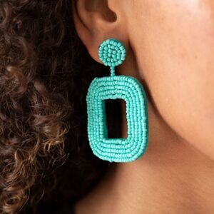 New, Chic aqua beaded earrings with a geometric design. Ideal for a vibrant touch.
