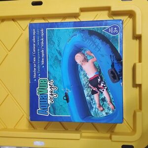Blue AquaVue Voyager inflatable boat. Features a clear bottom viewing window.