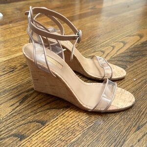 Aquazzura cork wedge in beige with clear straps trimmed in beige, never worn outside just in house for try on reasons.