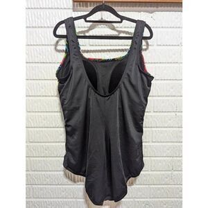 Aquabelle Women's Multi-Color One Piece Floral Top Solid Bottom Swim Suit Size 22W