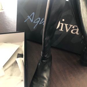 Great condition. Leather, waterproof and knee high. Black. Comes with box.