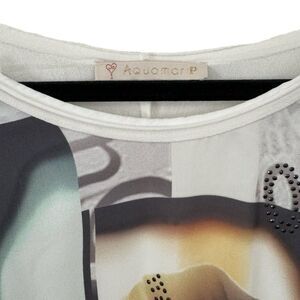 Aquamar Long Sleeve Graphic Blouse Size Small
