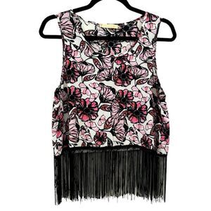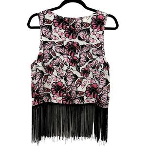 Aquamar Pink and Black Fringe Tank Top Size Small