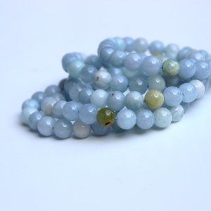 This beaded bracelet is handmade with natural Aquamarine beads. We used a bead size 8mm and it is all natural stones. The bracelet is a wrist standard size 7 for women. Price is per bracelet