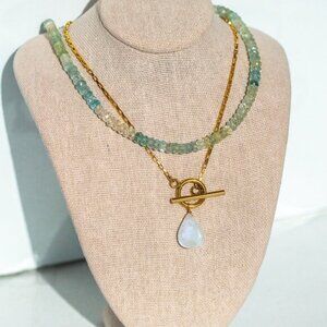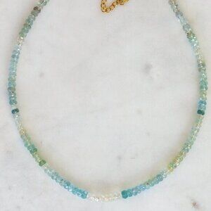 Aquamarine Beaded Necklace BEAUTIFUL goddess necklace for her Non-tarnish Gold