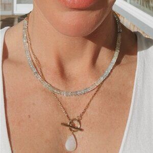 Gemstone Jewelry Birthstone Jewelry Non-tarnish Gold necklace Layering Necklace Gorjana Goddess Necklace March Birthstone Beaded Necklace