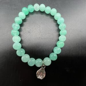 Aquamarine Beaded with Ladybug Charm Healing Reiki Stretch Bracelet