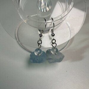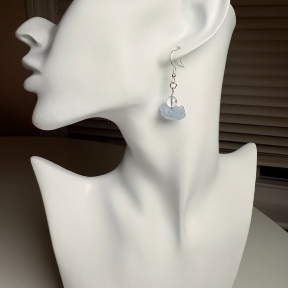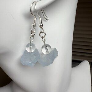 Aquamarine & Clear Quartz Drop Earrings – Raw Crystal Dangles