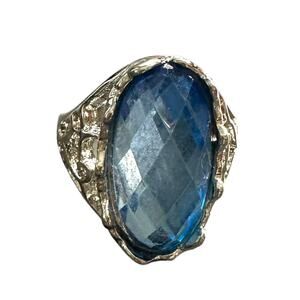 Aquamarine Costume Jewelry Statement Ring Oval 6 Silver Setting