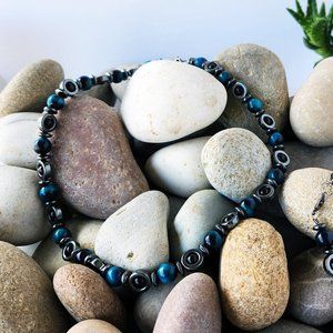 This variation of the Icarus M1 is strung on metal allow wire and closed with a solid stainless steel lobster claw, giving the piece a solid and more rigid feel.