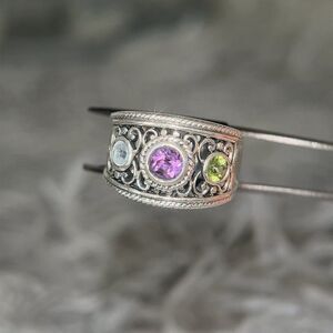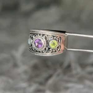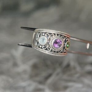 Aquamarine , Peridot, Amethyst Sterling Silver 925 Ring