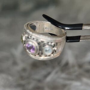 Sterling Silver 925 Aquamarine , Peridot & Amethyst Ring.