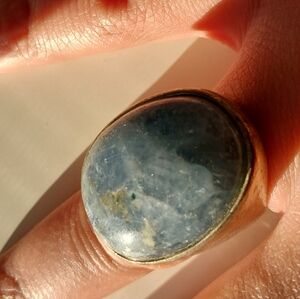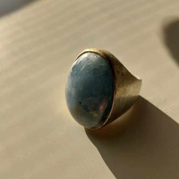 Signed KC blue aquamarine ring 30 grams gold plated has tarnishing priced accordingly size 8