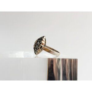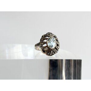 Aquamarine Semi-Precious Marcasite 925 Sterling Silver Vintage Ring - sz 6