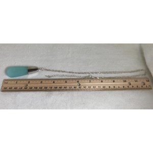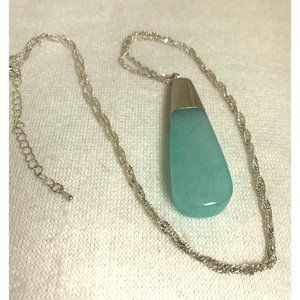 Aquamarine Stone with Silver Tone Chain and Fittings Necklace - 32"