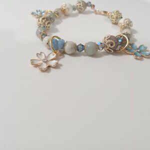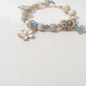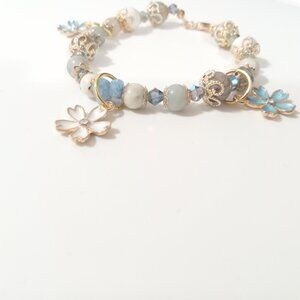 Aquamarine, White Amazonite, Blue Amazonite Blue and White Cherry Blossom Bracel