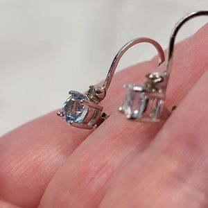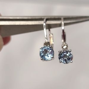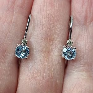 Beautiful sterling silver genuine Aquamarine and genuine Diamond earrings with lever back closure.
