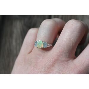 Aquamarine and opal engagement ring sterling silver size 3 4 5 6 7 8 9 10 11 12