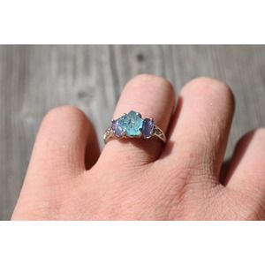 Handmade Aquamarine, emerald and tanzanite ring in solid .925 sterling silver.
