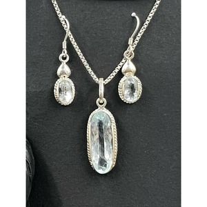 Aquamarine jewelry set Handmad 925 Starling Silver Stone Region Gilgit