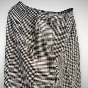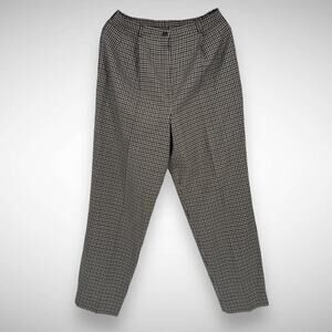 Aquascutum Houndstooth Checked Wool Brown Trousers Pants Size 12 Women's Twee