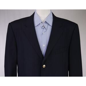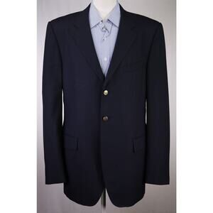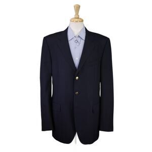Aquascutum London Men's Navy Blue Gold Metal Buttons Wool Blazer 44L